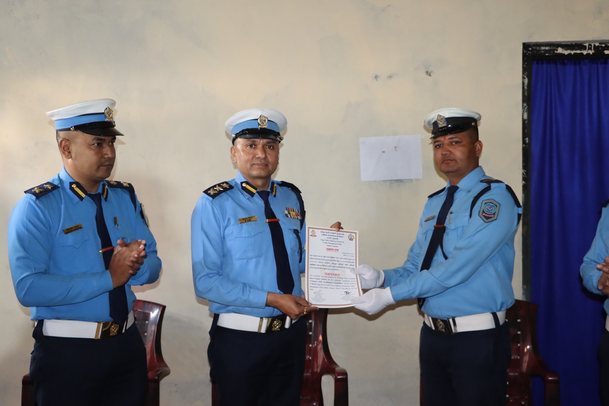 ।नेपाल प्रहरी राजमार्ग सुरक्षा तथा ट्राफिक व्यवस्थापन कार्यालयमा एक कार्यक्रमका बिच कम्प्युटर सम्बन्धी दक्षता अभिवृद्धि अनुशिक्षण चौथौ समुहको तालिम समापन तथा अन्तर्क्रिया कार्यक्रम सम्पन्न भएको छ ।