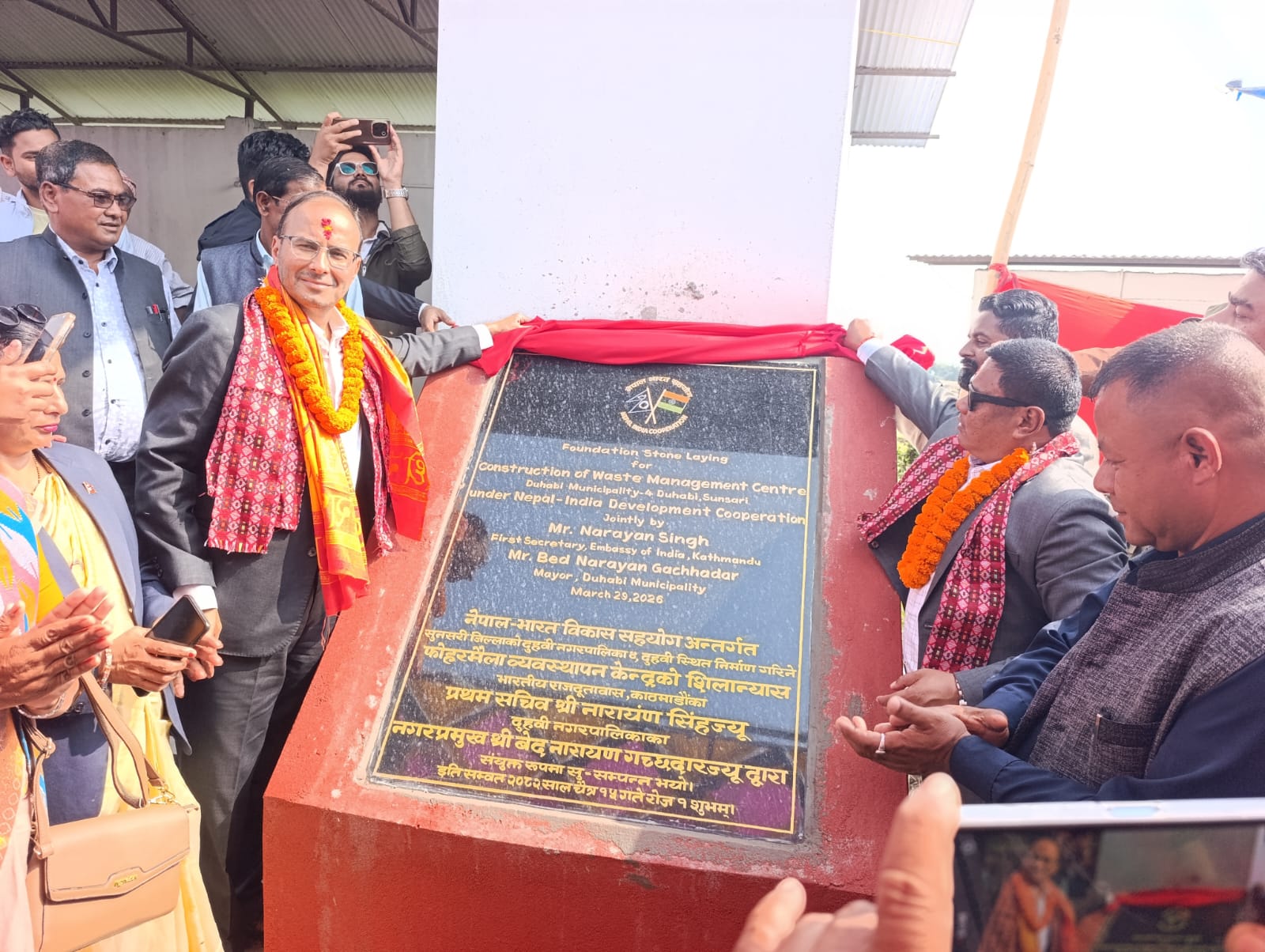 आइतबार आज दुहबी वार्ड न ४ अबस्थित फोहोर प्रशोधन केन्द्रमा सिल्यनास आयोजित कार्यक्रममा भारतीय दूतावासका सचिब नारायण सिंहले सो रकम बराबरको चेक दुहबी नगरपालिकाका नगर प्रमुख बेदनारायण गच्छदारलाई हस्तान्तरण गर्नु भएको हो ।