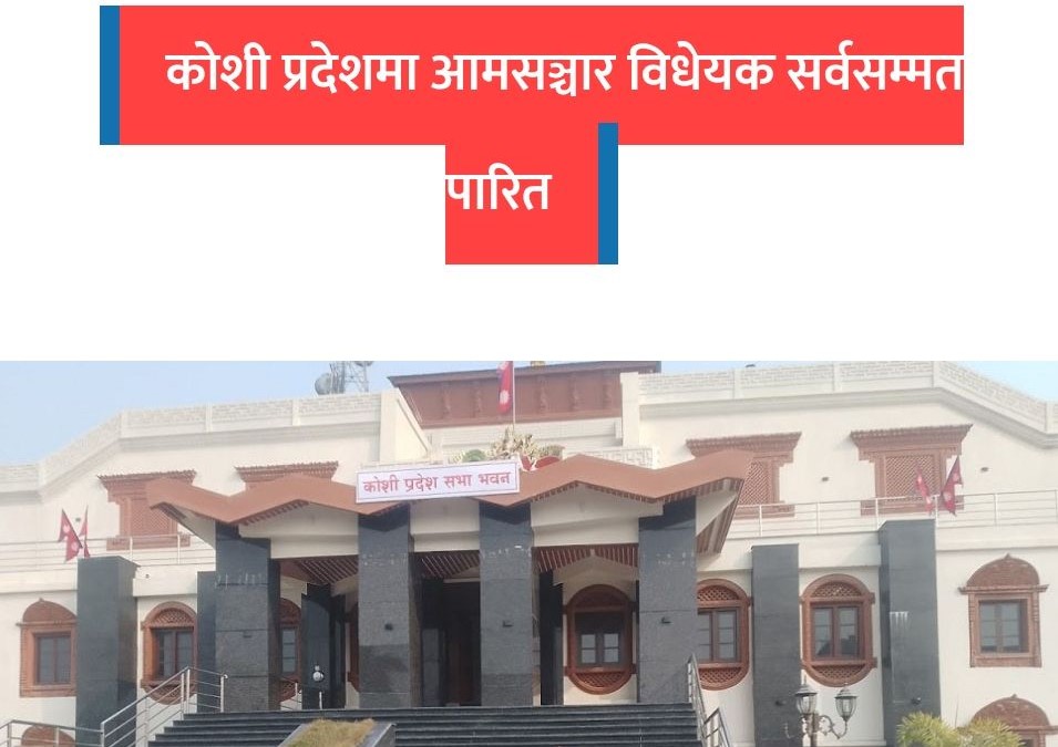 चैत २३ गते । कोशी प्रदेश सरकारले ल्याएको ‘आमसञ्चार सम्बन्धमा व्यवस्था गर्न बनेको विधेयक’ प्रदेश सभाबाट सर्वसम्मत रूपमा पारित भएको छ ।